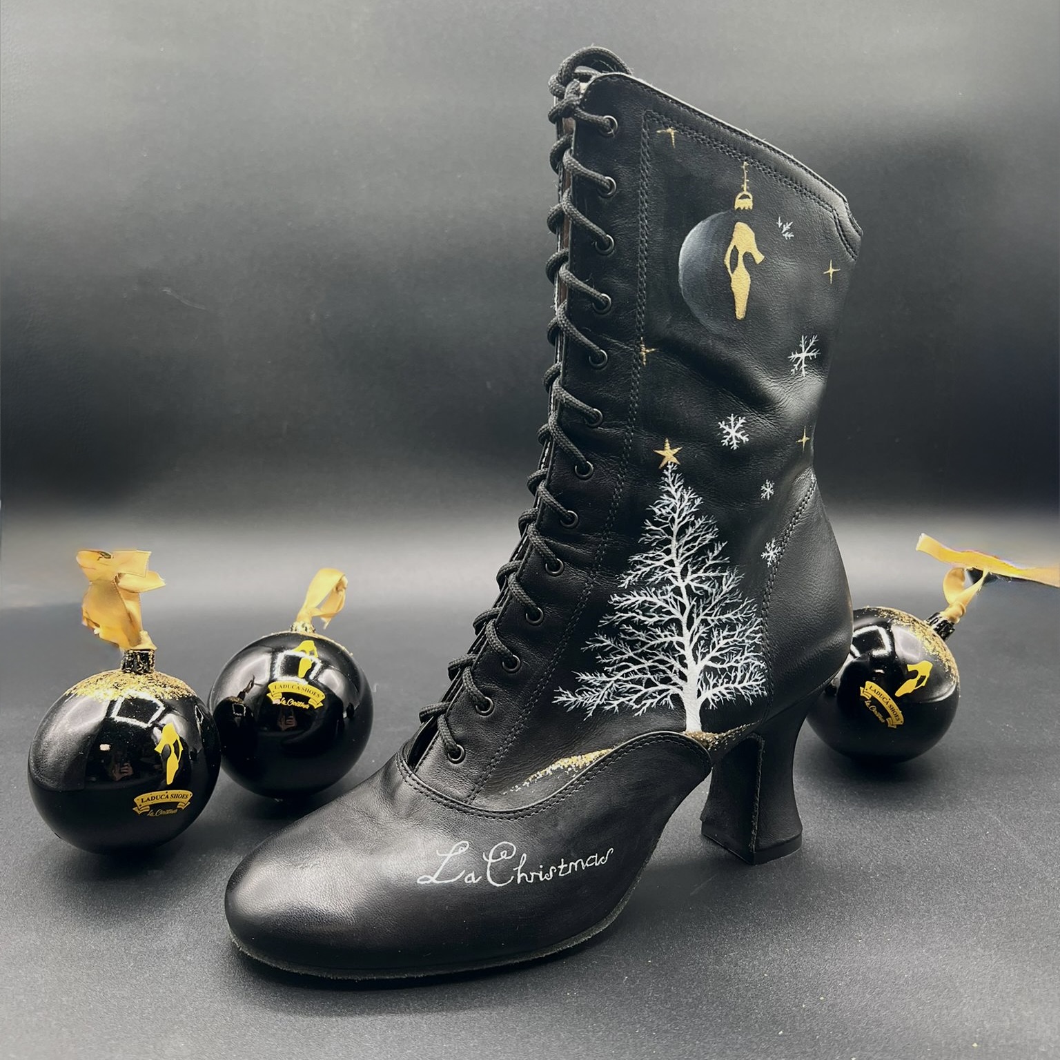 Valentines and Christmas themed in-store painting on Italian leather 'Laura' dance boot.
