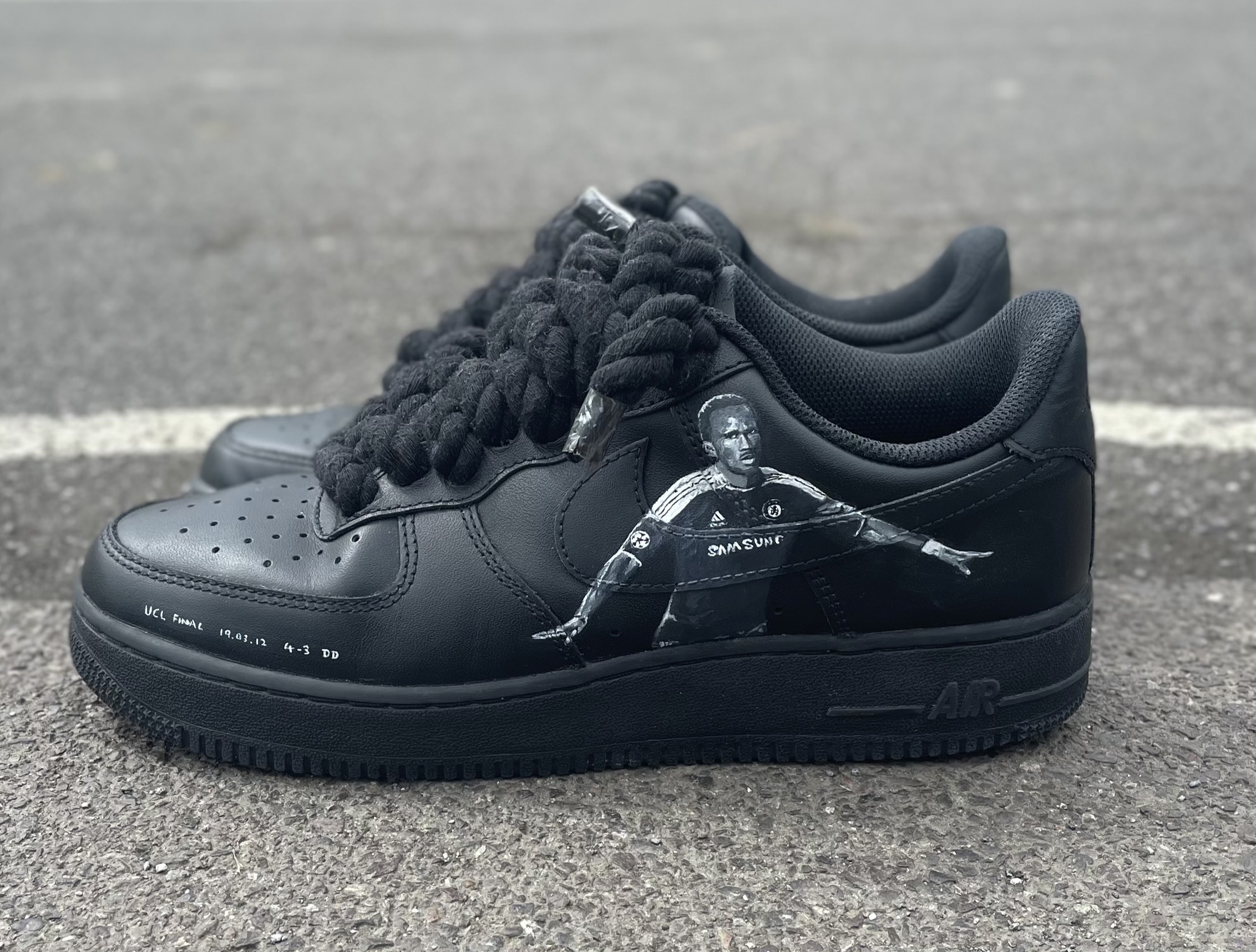 Chelsea Footballer Didier Drogba featuring his winning champions league final celebration with custom laces.